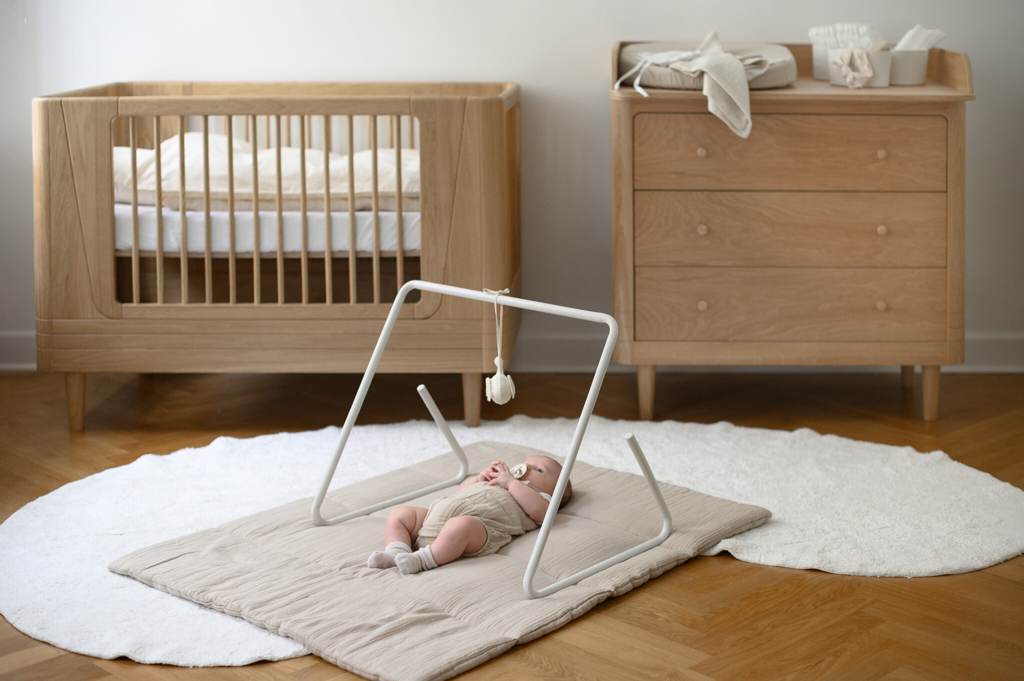Babybett in Eiche Natur von we are bitte. 124 x 72 cm, 90 cm hoch. Umbaubar und erweiterbar zum Juniorbett. Lesen Sie mehr