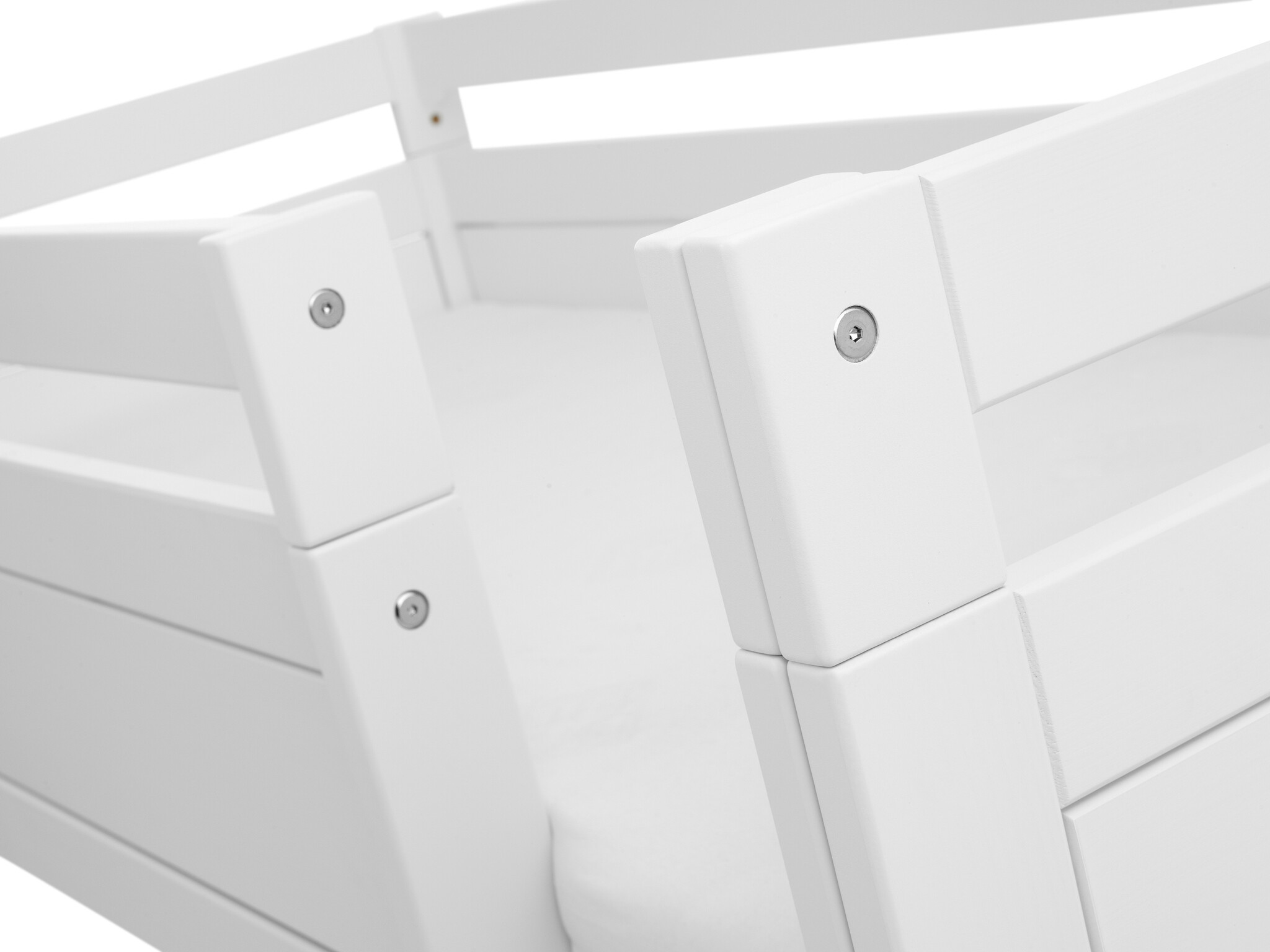 Material: Massive astfreie Kiefer, weiß lackiert, Stäbe Metall