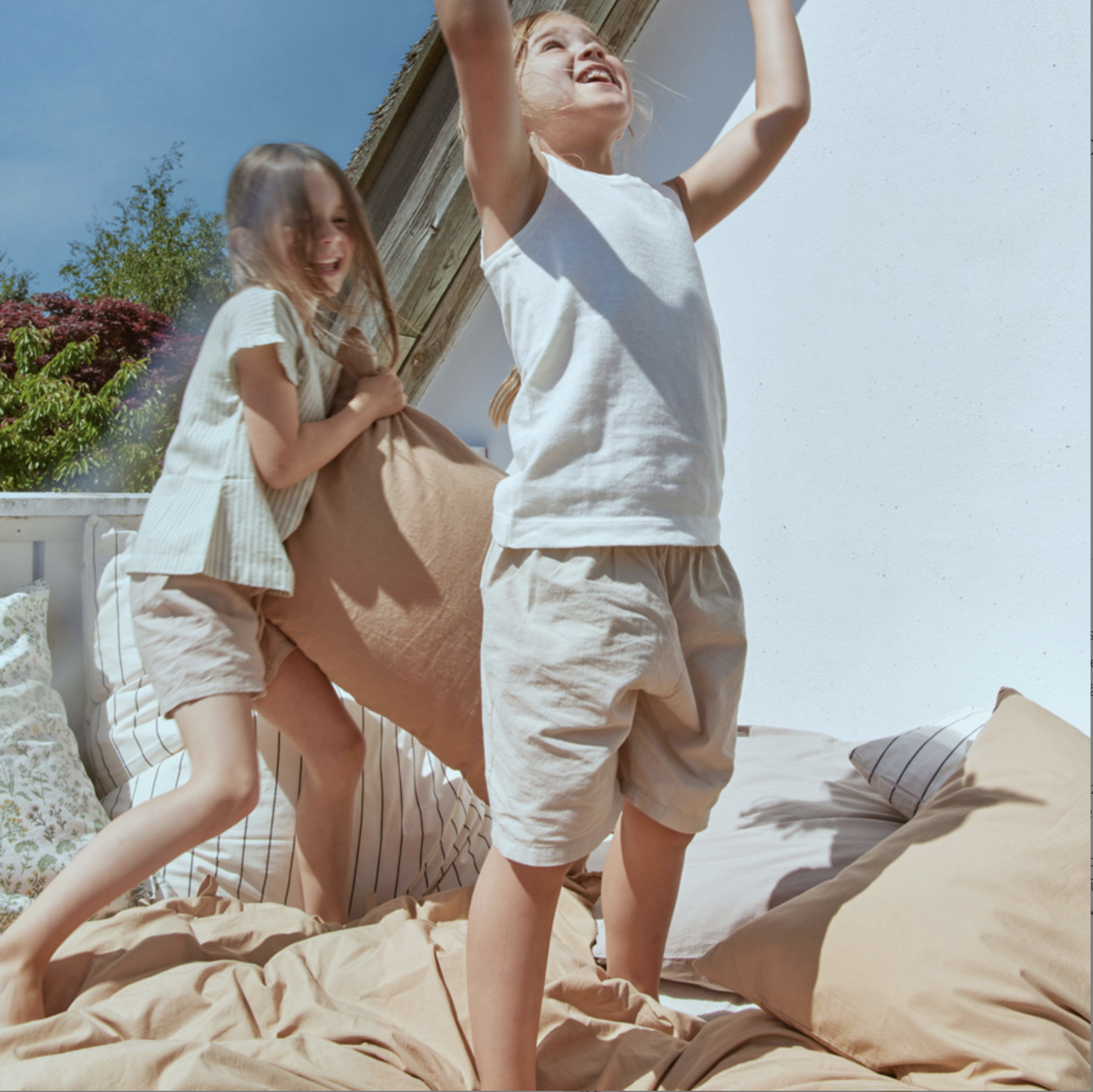 Weiche Bettwäsche aus 100% Bio-Baumwollperkal. Das dichte Perkal-Gewebe ist nicht nur strapazierfähig und schön anzusehen, sondern auch leicht und atmungsaktiv. Die Bettwäsche ist vorgewaschen, was ihr ein natürlich knittriges Aussehen verleiht und sie unglaublich weich macht - je öfter man sie benutzt, desto weicher wird sie. Der Kopfkissenbezug ist mit einem Umschlagverschluss, während der Bettbezug mit eleganten Bändern geschlossen wird. Sommerblumenmuster ist ein zeitloser Klassiker, der ein wenig nostalgisch ist, aber nie aus der Mode kommt.