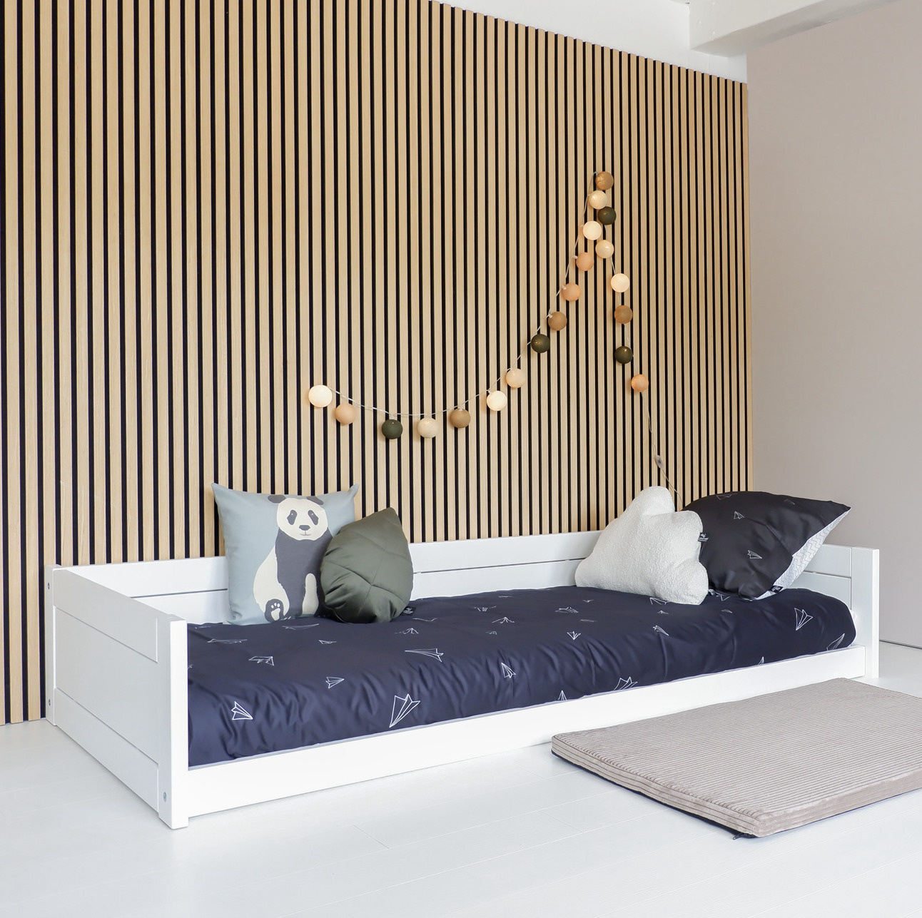 Die kleine Spielmatratze besteht aus einem Schaumstoffkern und einem weichen Bezug aus Velours-Rippgewebe mit praktischen Anti-Rutsch-Noppen an der Unterseite. Sie können die Spielmatratze einzeln oder zwei zusammen verwenden, um den Platz unter einem LIFETIME-Bett auszufüllen.