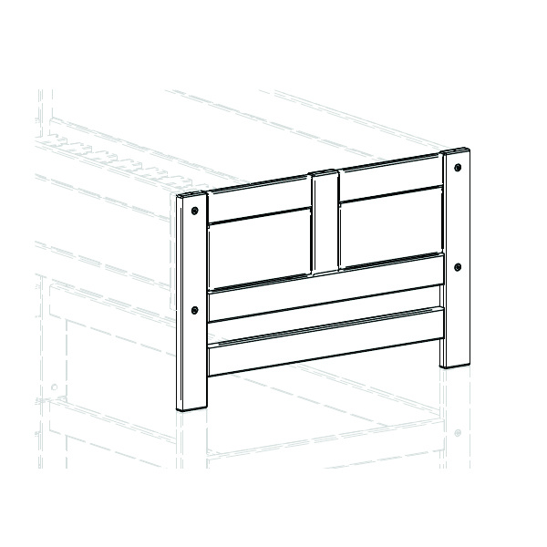 Kann rechts oder links montiert, bzw. auch geöffnet werden. Ideal bei Verwendung des Treppenmoduls. So muss die Bettkante nicht überwunden werden. Beim Kojenbett dienst es als Öffnung für Rutsche oder Leiter. Das geschlossene Kopfteil vom Bett wird für einen späteren Umbau aufgehoben.