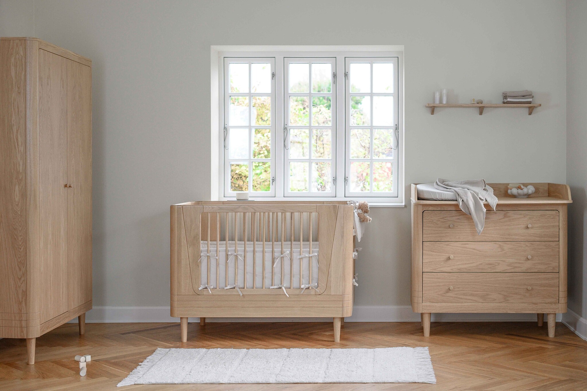 Dieser wunderschöne und zeitlose Kleiderschrank aus Eiche vereint elegantes Design mit praktischer Funktionalität. Die klaren Linien und das natürliche Holz verleihen jedem Raum Wärme, während die solide Konstruktion für eine lange Lebensdauer sorgt. Das Kind kann ihn sogar mitnehmen, wenn es auszieht. Der Kleiderschrank wurde speziell für Kinder entworfen und bietet Platz für Kleidung, Spielzeug und Alltagsgegenstände, sodass das Zimmer stets ordentlich und aufgeräumt bleibt. Sein schlichter, zeitloser Stil macht ihn nicht nur fürs Kinderzimmer, sondern auch für andere Wohnbereiche perfekt. Die Regalböden im Inneren lassen sich individuell anordnen.