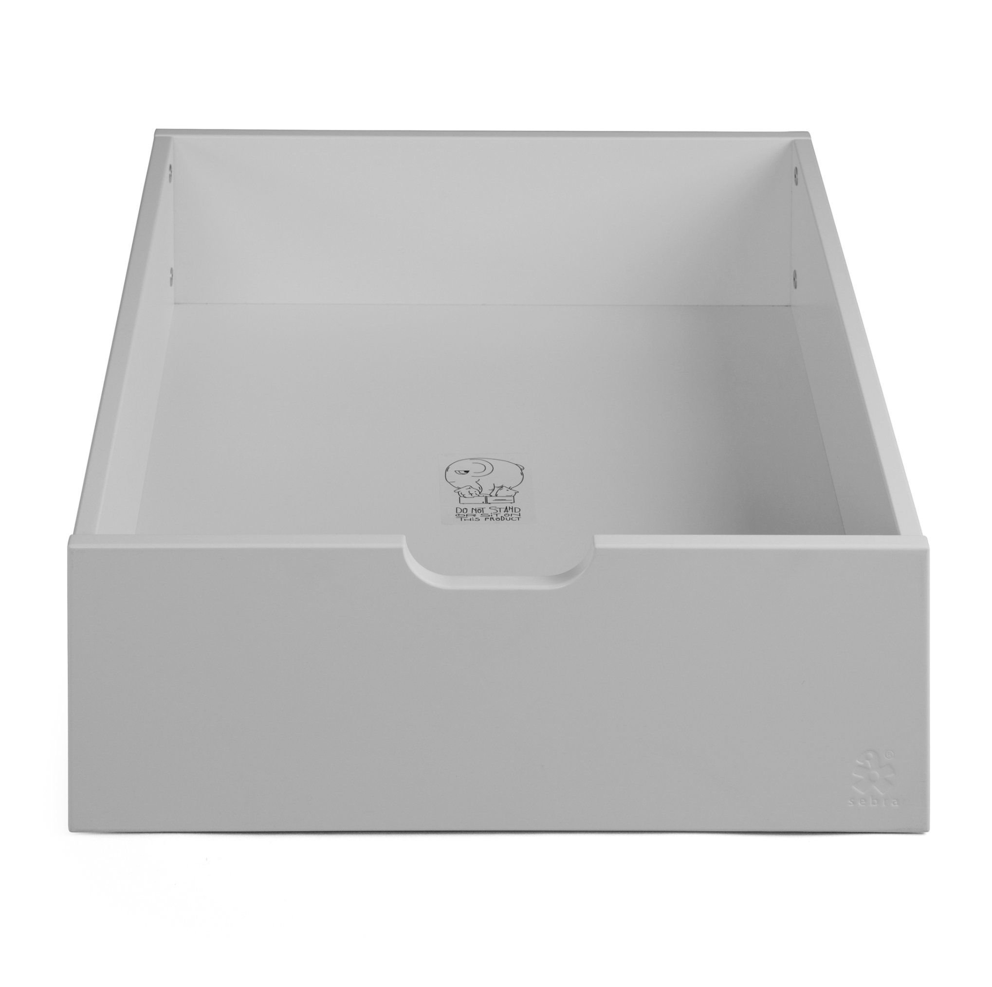 The Sebra bed drawer fits asymmetrically under the baby bed. Two drawers can be pushed under the junior bed. A drawer can be filled with all kinds of toys, laundry or bed linen up to 10 kg.