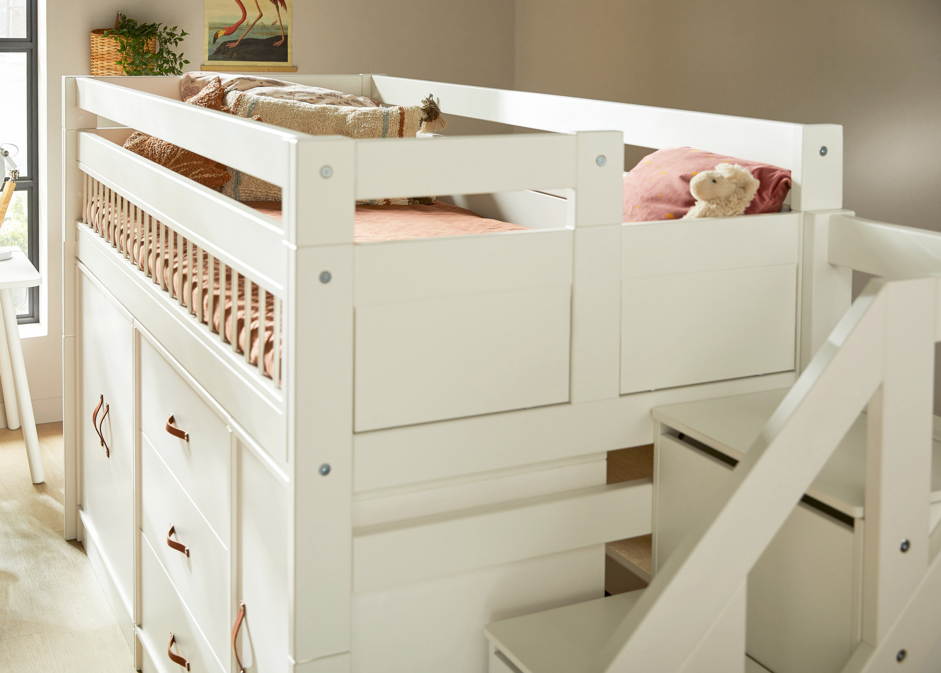 Through separately available conversion sets, it can be converted into different bed forms, such as a loft bed. This gives the possibility to adapt the bed to the needs and development from child to teenager.