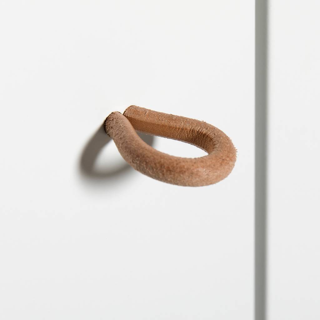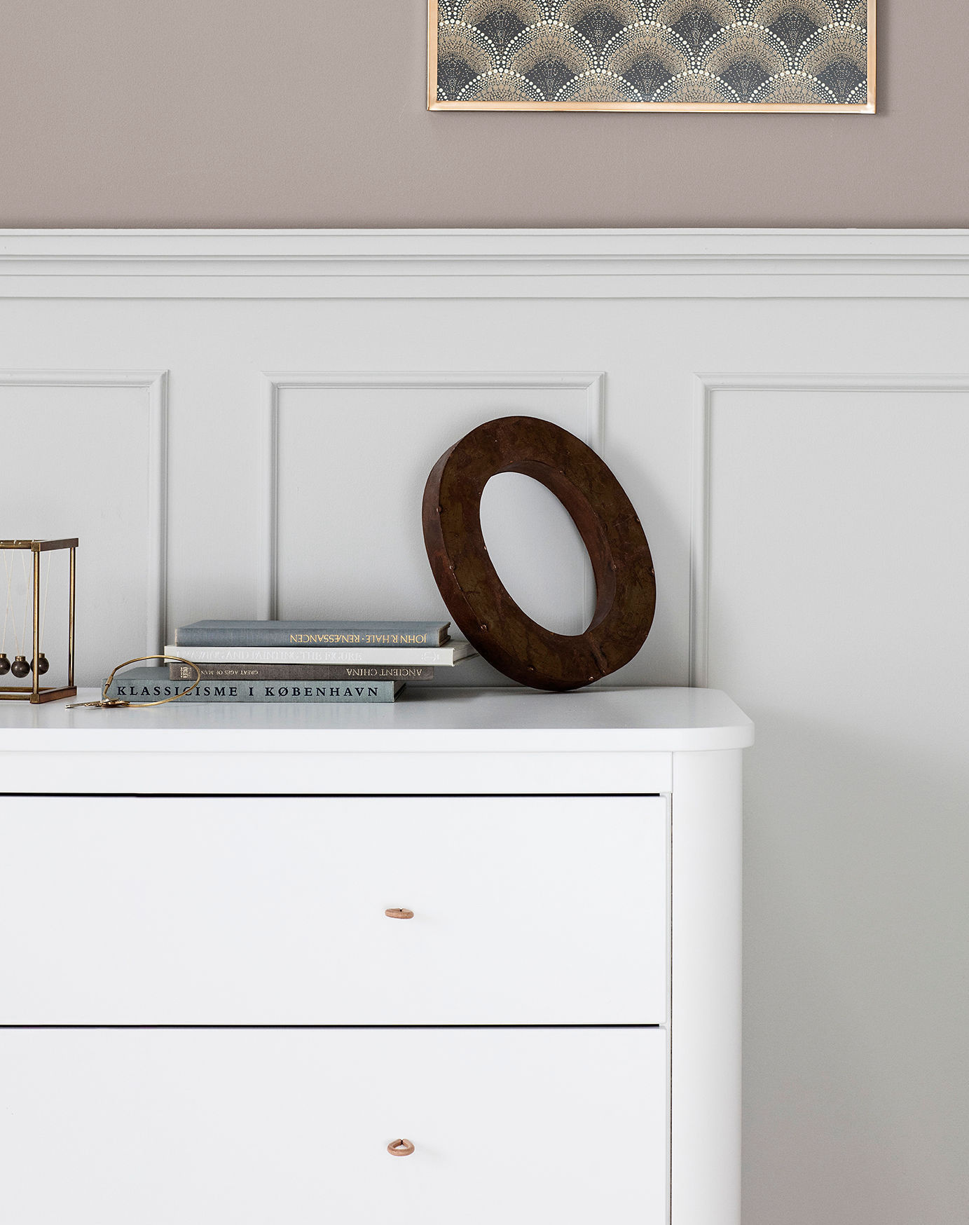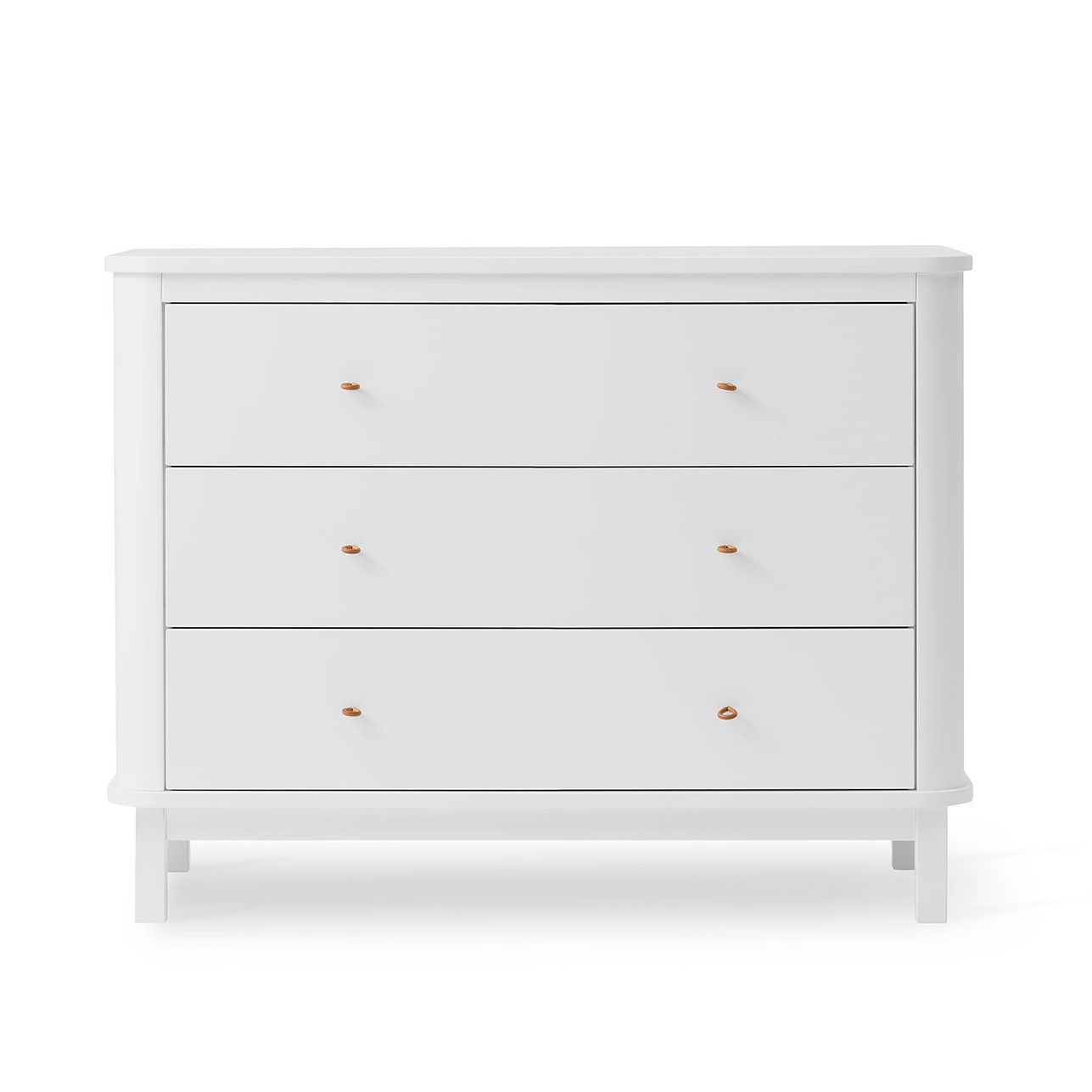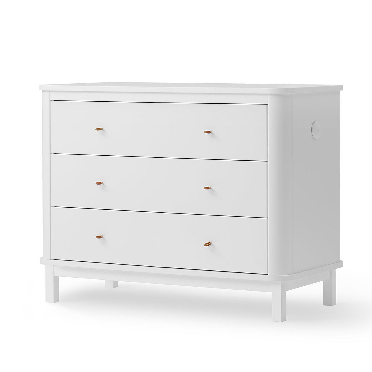 Oliver Furniture Wood chest of drawers in white with white base. 3 drawers with leather loops. 118x90x58cm. Read more